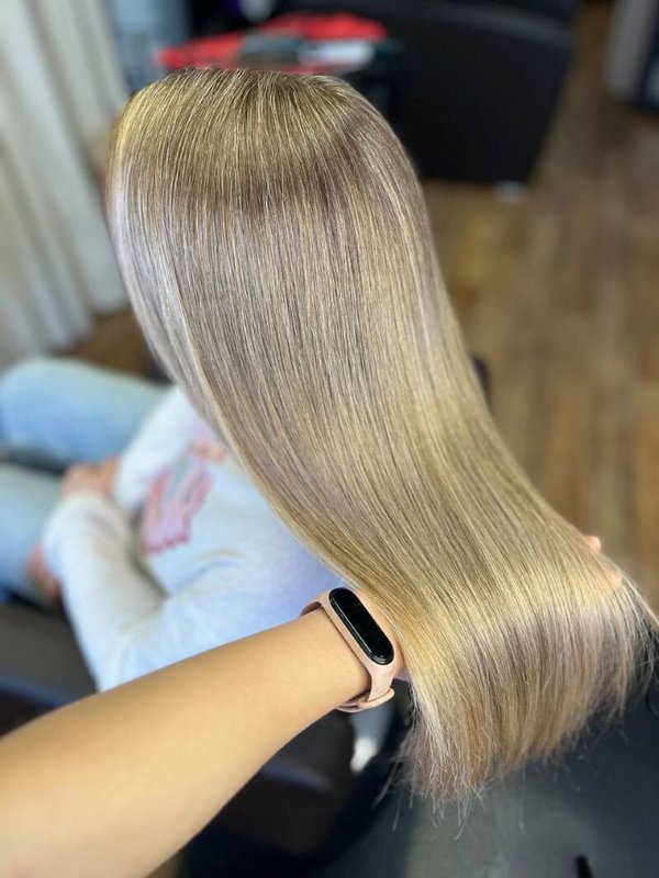 Я всегда к Лене хожу, относится к клиентам с душой, будто к родственникам. Она нравится мне от и до, как человек и мастер, хожу к ней, как к подруге. По ее работе вообще нареканий нет. Делали окрашивание тотал блонд. Получилось прекрасно, как я и ожидала. Осталась довольна, как всегда. Я же скидывала мастеру фотографию с желаемым результатом. И сейчас мы выпрямим и подстрижем волосы, будет идеально!